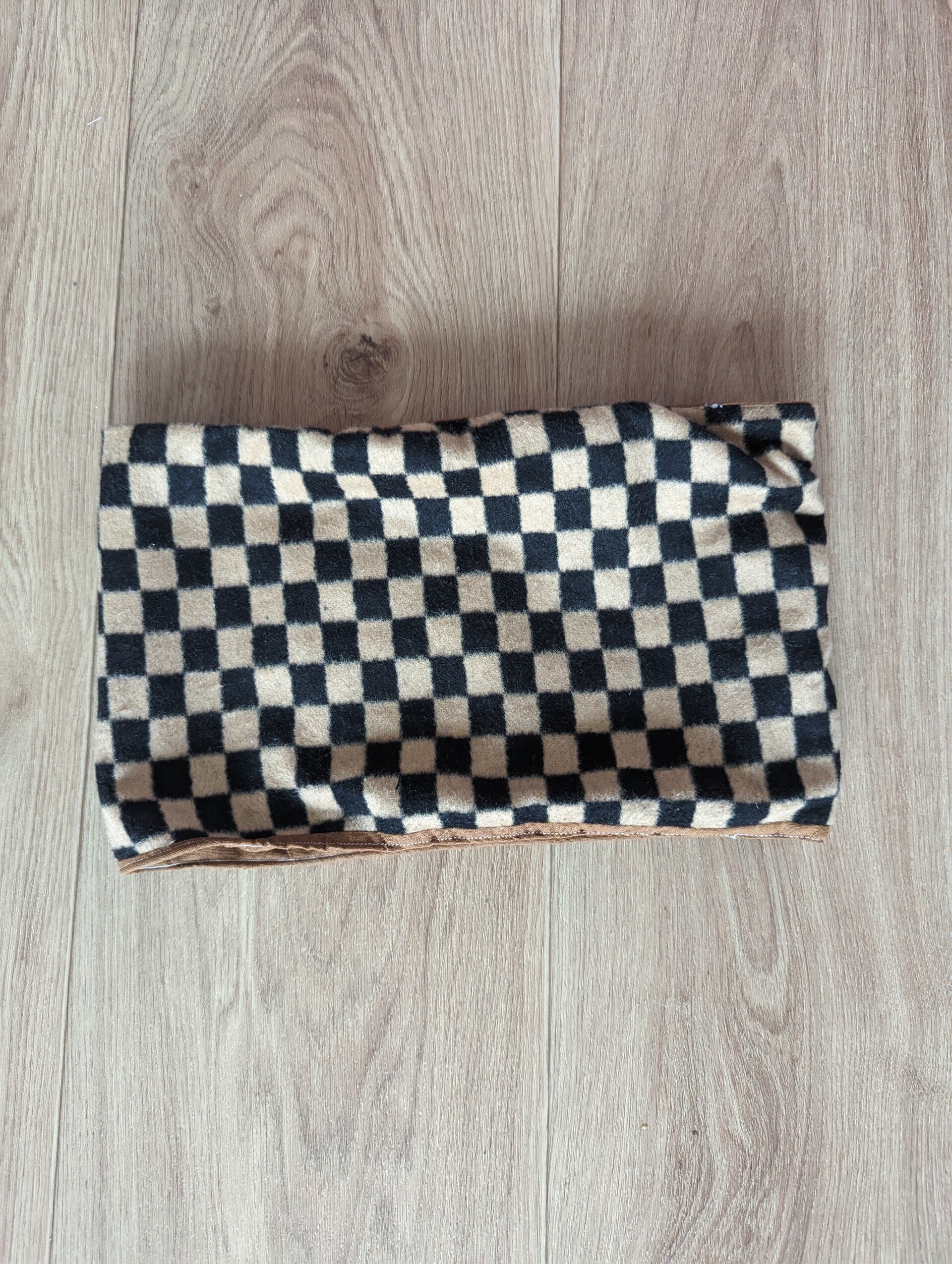 Découvrez la collection Damier, un accessoire unique réalisé avec lainage épais et coton marron de haute qualité. Ce béret allie élégance et solidité, offrant un style chic tout en étant pratique. Conçu avec des matériaux soigneusement sélectionnés, chaque pièce est solide et durable. Veuillez noter que ce béret présente un défaut de réalisation : une couture imparfaite à l'arrière du béret. Ce petit défaut explique la remise sur le prix, mais n'altère en rien la qualité générale de l'accessoire.