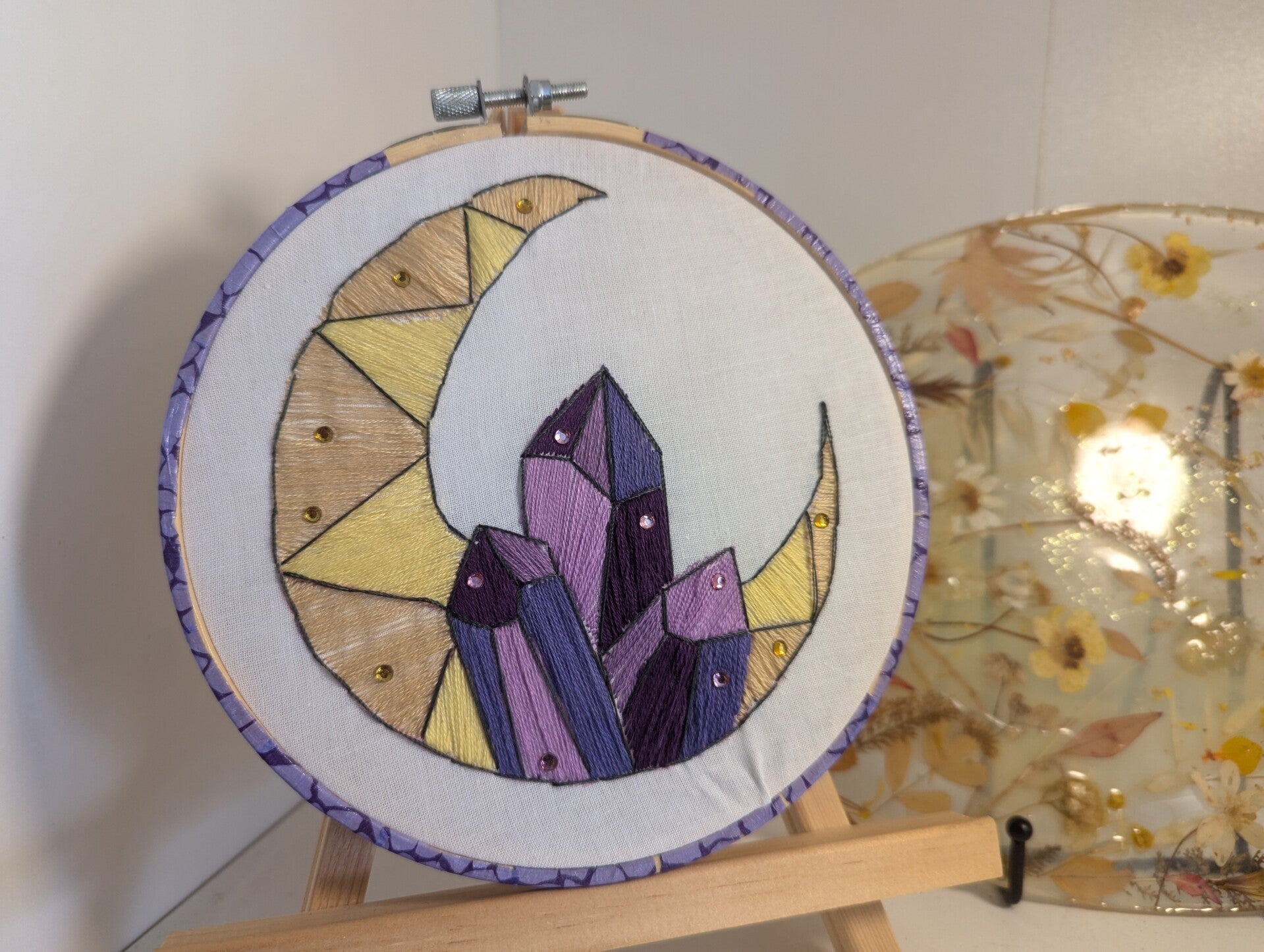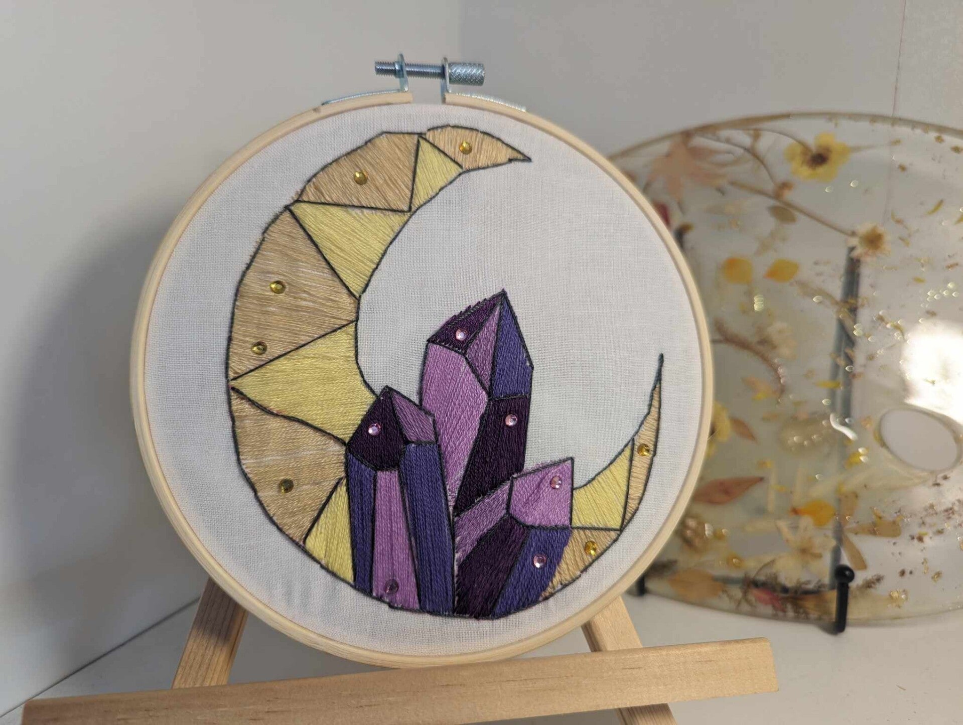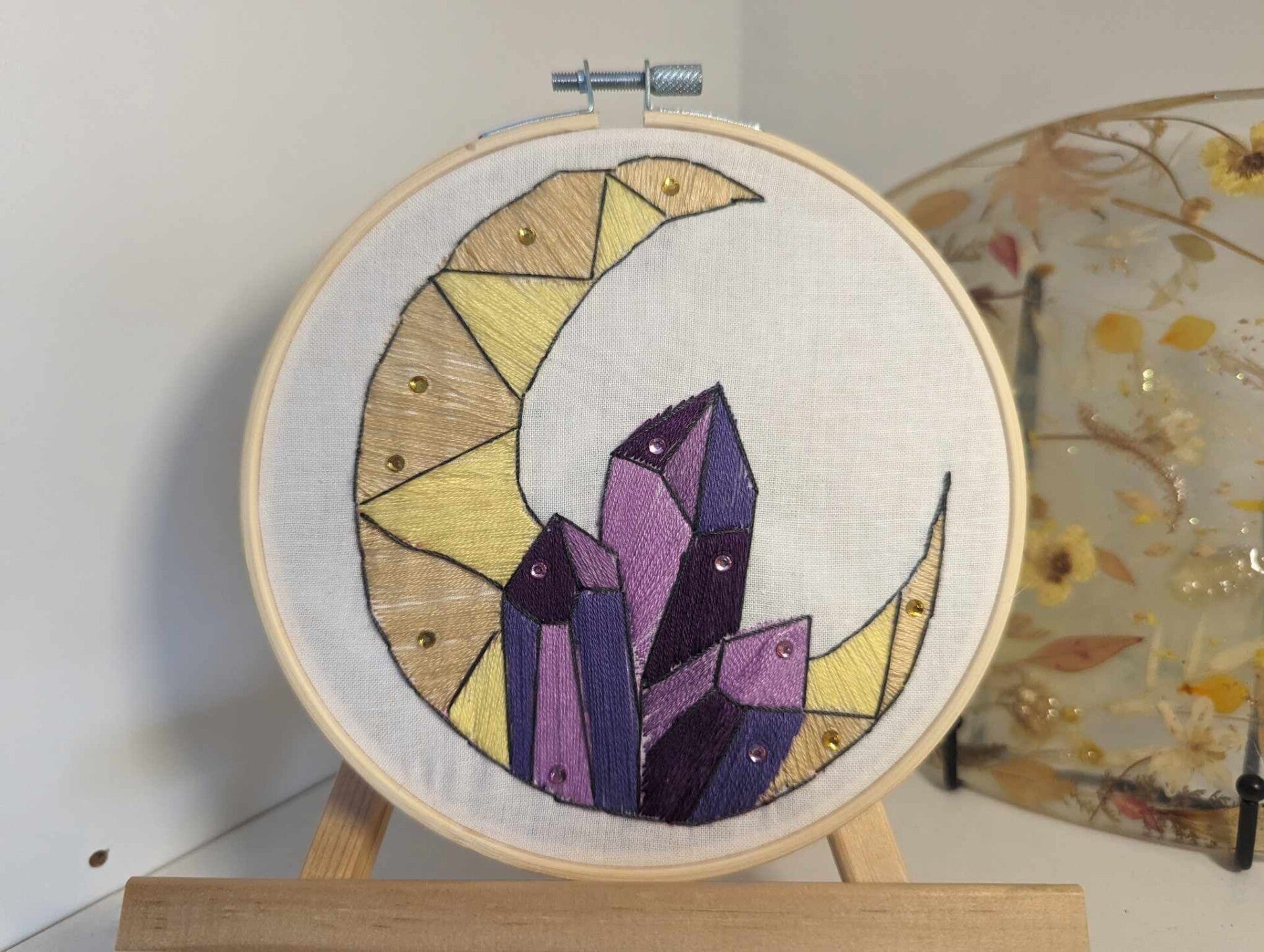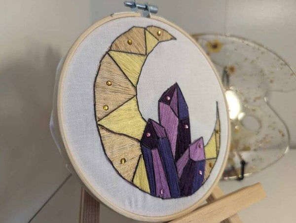 Apportez une touche de magie cosmique à votre décoration avec cette broderie et laissez les cristaux et la lune illuminer votre intérieur. 🌙✨