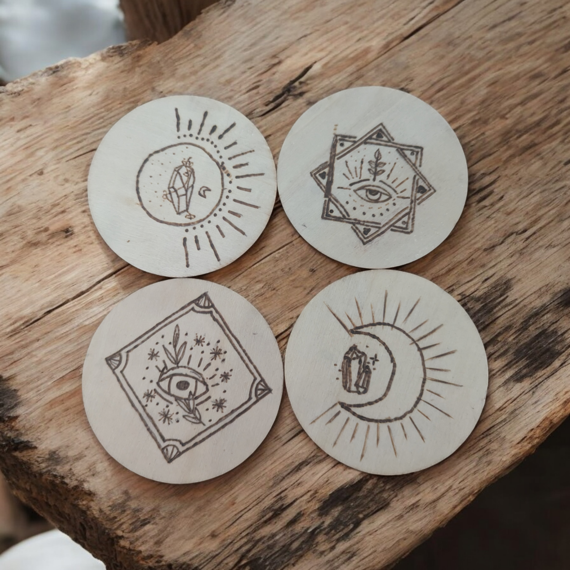 Offrez à votre intérieur un peu de magie et de mystère avec ces dessous de verre pyrogravés et laissez l'énergie ésotérique envahir votre quotidien. 🔮✨