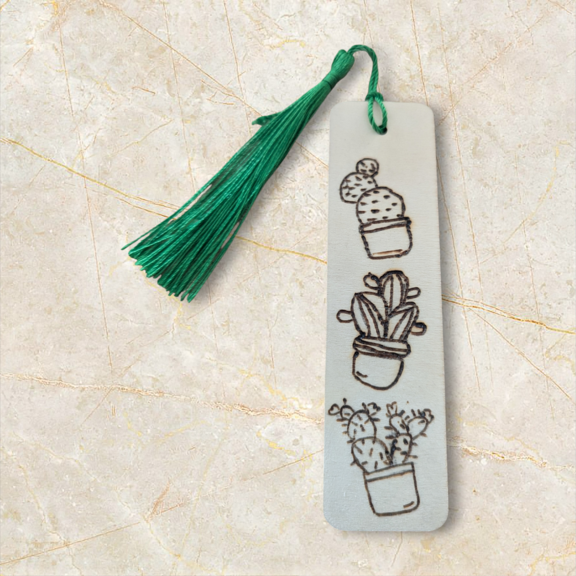 Ajoutez une touche de nature et de couleur à vos livres avec ce marque-page pyrogravé Cactus, un cadeau parfait pour les amateurs de lecture et de décoration artisanale. 🌵📚