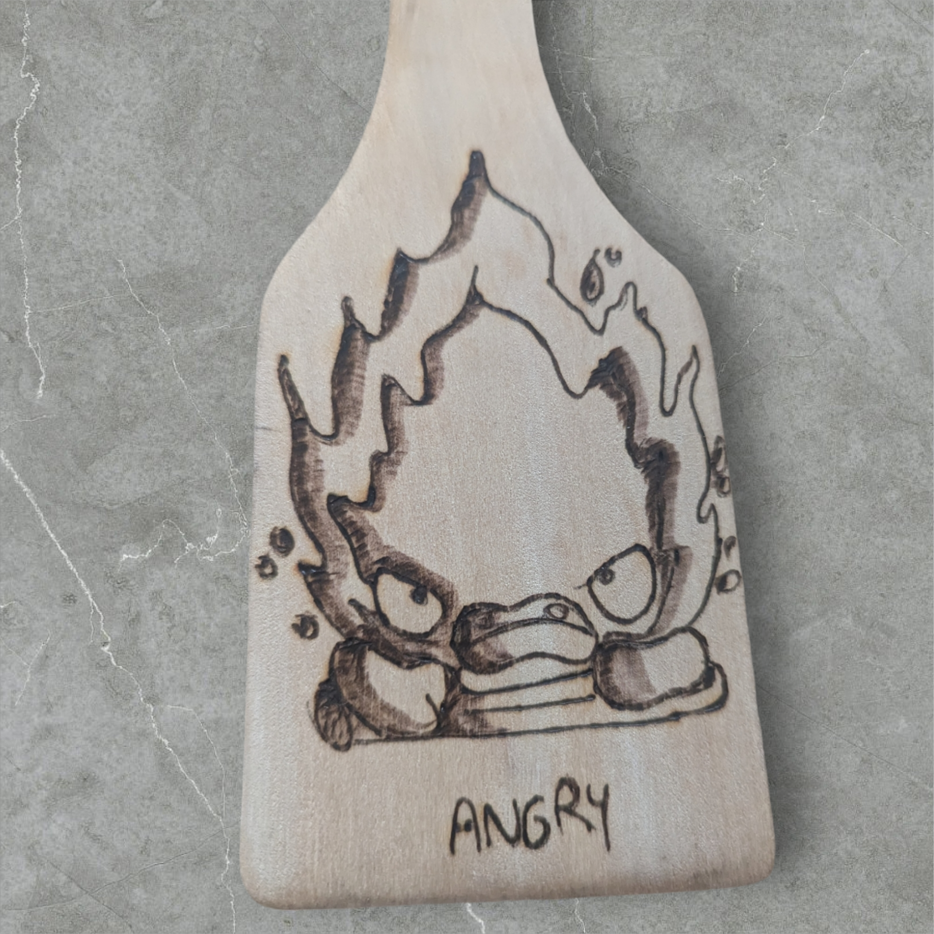 Ajoutez une touche de caractère à votre cuisine avec cette spatule en bois pyrogravée inspirée de Calcifer en Colère, un personnage emblématique de Miyazaki. Chaque spatule est minutieusement réalisée à la main, garantissant un design unique et authentique. Conçue sans vernis ni peinture, elle conserve l'aspect naturel du bois tout en étant durable et fonctionnelle.