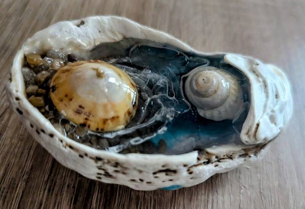 Apportez un peu de merveille et de nature à votre intérieur avec cette coquille d'huître de Bretagne, renfermant un fascinant diorama marin à l'intérieur. Chaque coquille est remplie de véritables coquillages, de gravier et de résine, créant une scène marine unique et artisanale. Disponible en taille S (952 cm) et en taille L (1164 cm), ce diorama est parfait pour ajouter une touche marine et authentique à votre décoration, que ce soit sur une étagère, un bureau ou une table. Ces pièces artisanales capturent l’essence de l'océan pour sublimer votre espace de vie.