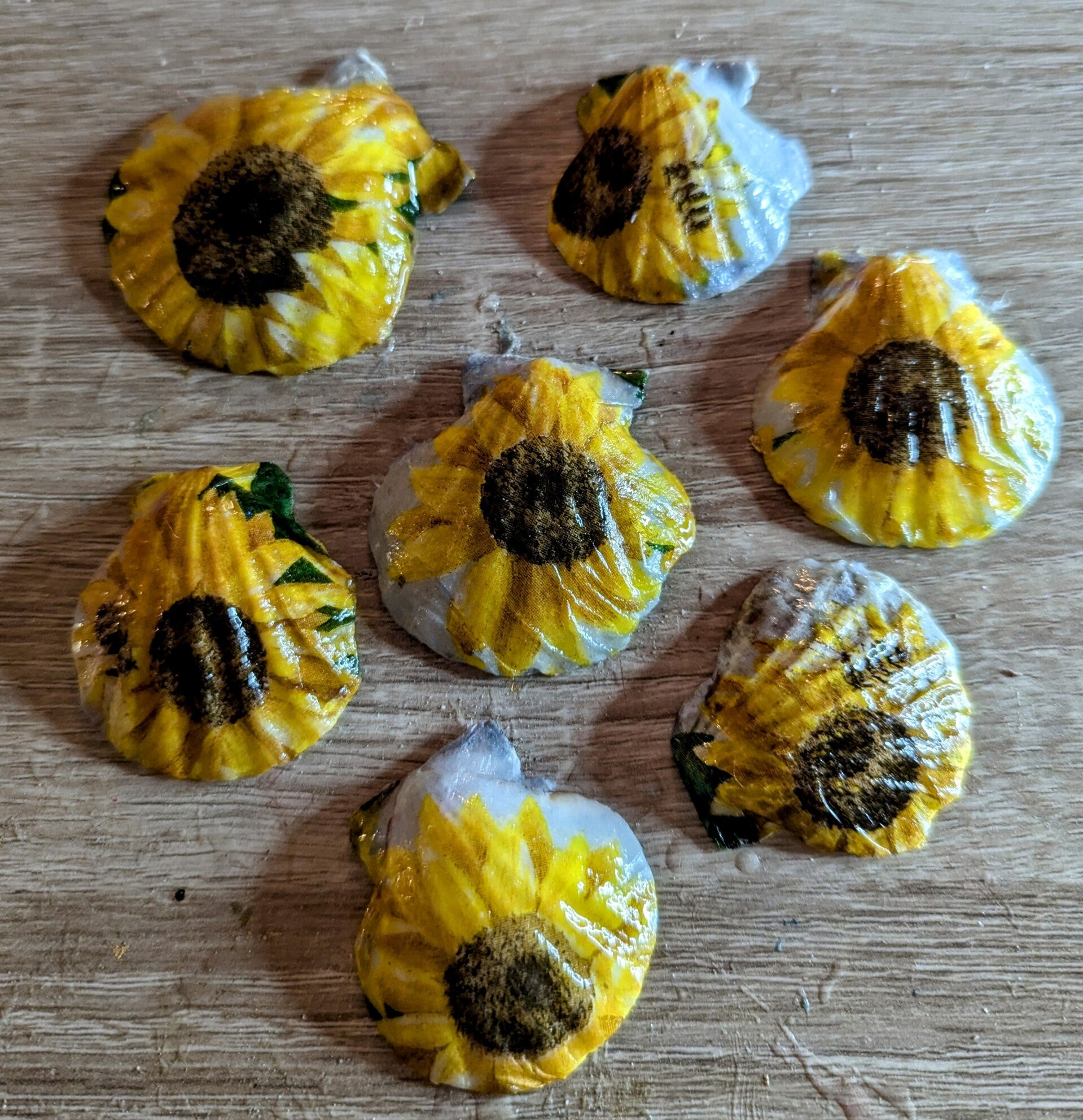 Ajoutez un brin de fraîcheur et de lumière à votre décoration avec ces coquillages décorés au thème du tournesol. 🌻🐚