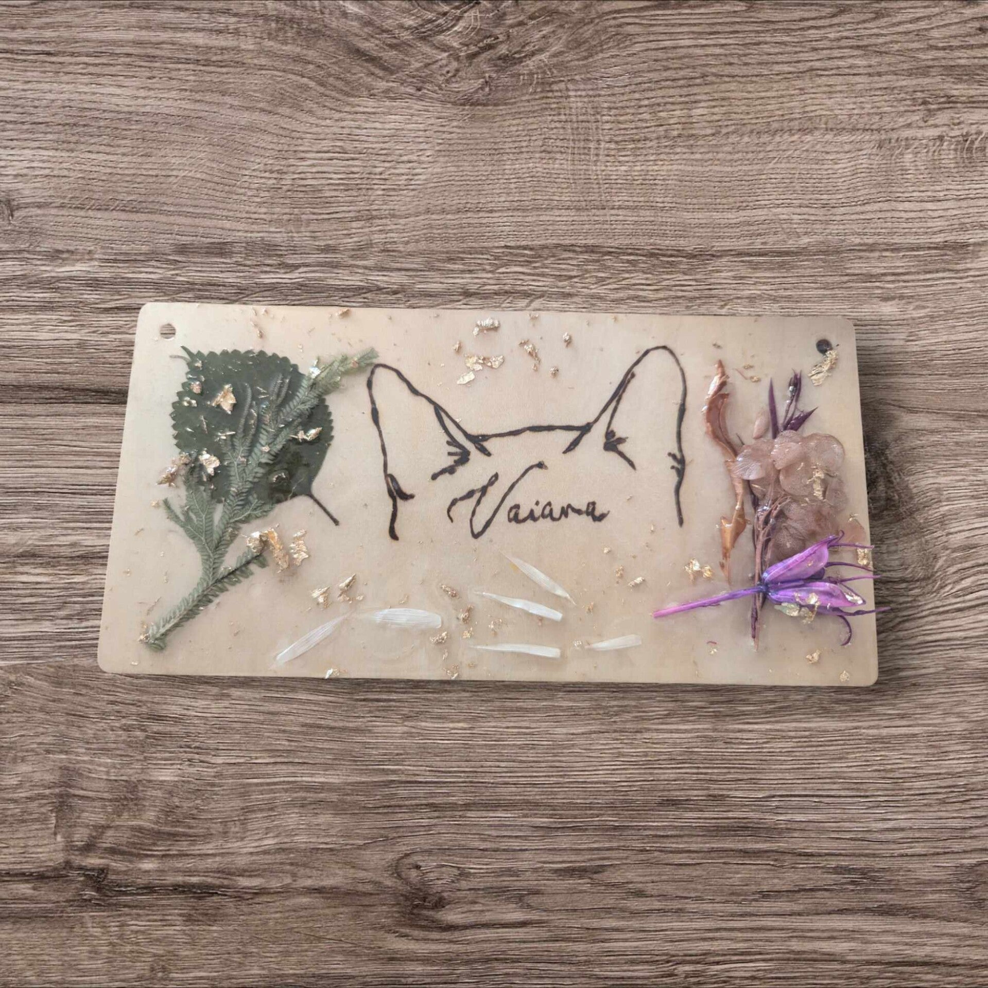 Plaque pyrogravée et résinée chat 100% personnalisable