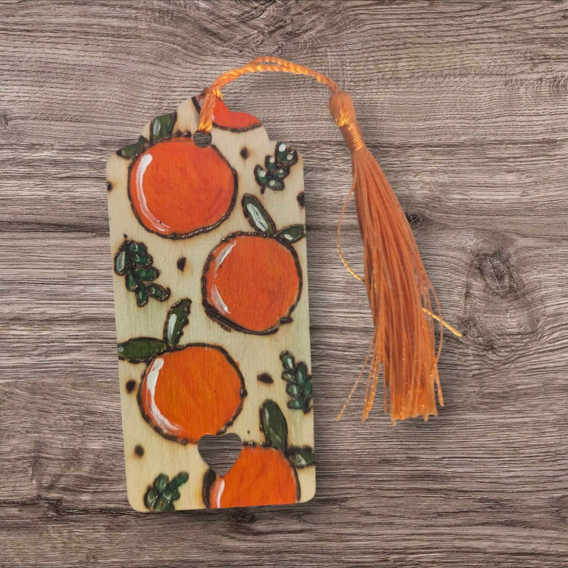 Marque page pyrogravé et peints