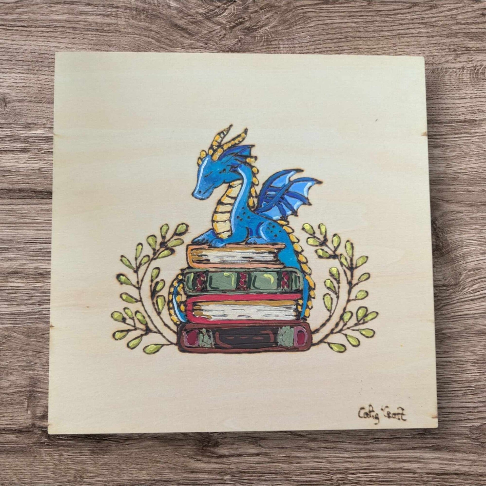 Apportez une touche de nature et de douceur à votre décoration avec cette pyrogravure "Dragon aux livres" réalisée à la main sur bois naturel. Ce magnifique format carré de 20 cm capture la puissance et la sagesse des dragons anciens.