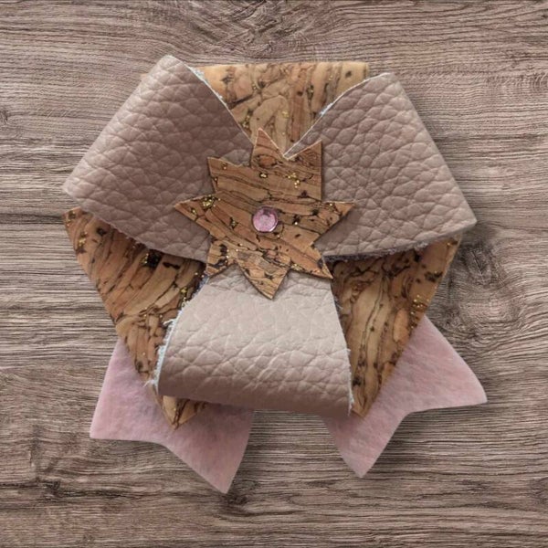 Apportez une touche d'élégance à vos coiffures avec ces cocardes pour cheveux uniques de la collection Marie. Réalisés avec soin en cuir, liège et agrémentés d'un petit strass, ces nœuds combinent design original et matériaux de qualité. Grâce à leur barrette en métal, ou leur attache pin's située à l'arrière, ils se fixent facilement dans vos cheveux ou sur vos vêtements, pour une tenue parfaite toute la journée. Parfaits pour ajouter du style à vos chignons, queues de cheval ou coiffures détachées.