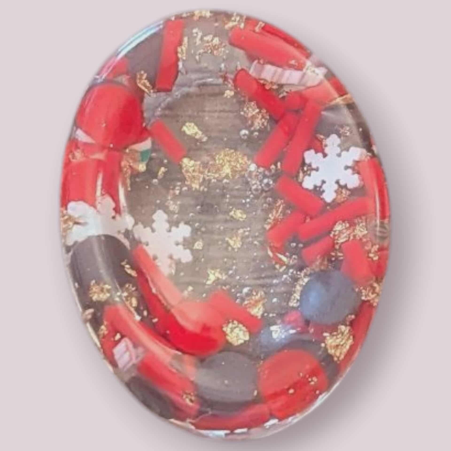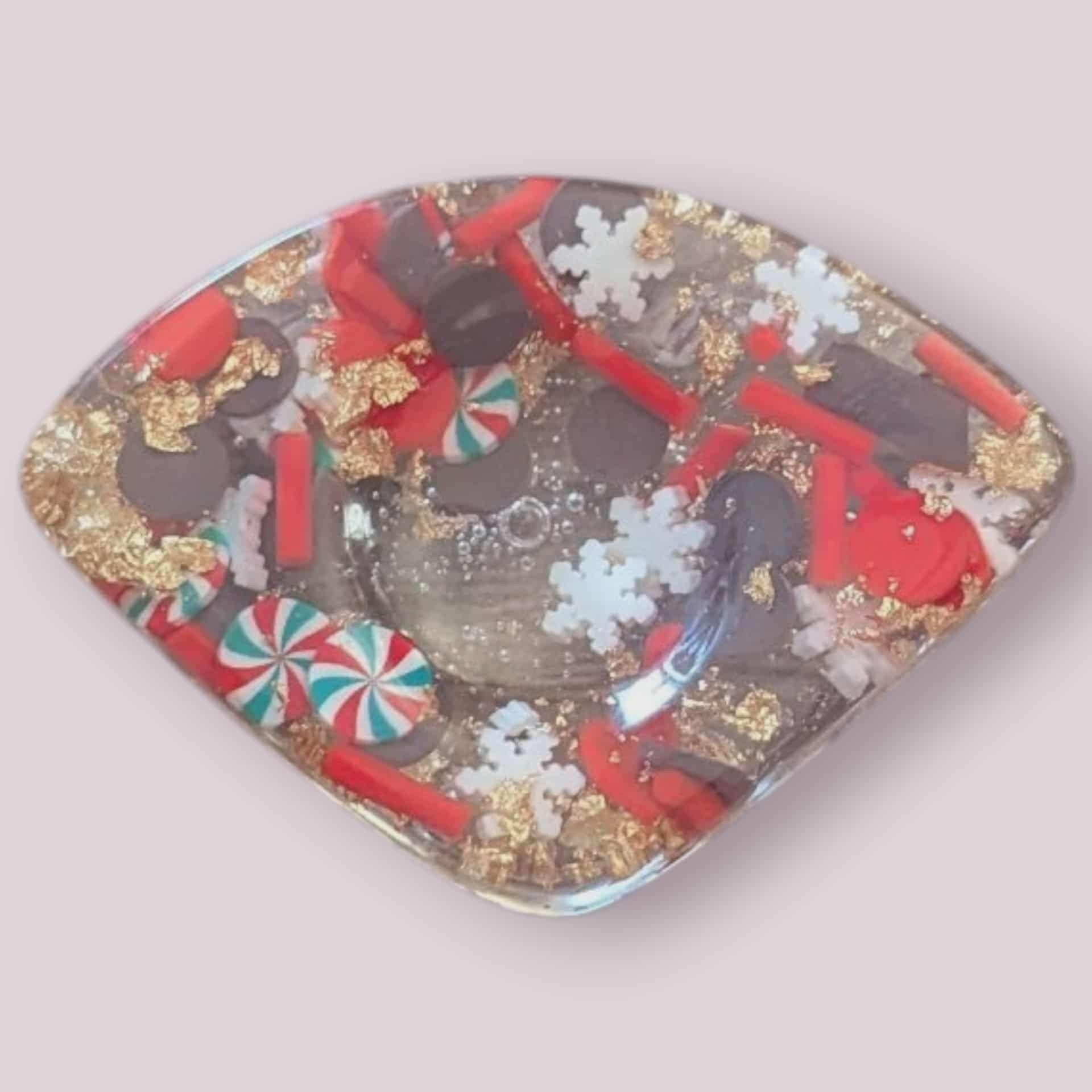 Modèle de Noël : ces stimtoys en résine ont été réalisés avec soin, et joyeusement colorés à l'aide de petits éléments rappelant cette fête de fin d'année, et agrémenté de petits morceaux de feuille dorée !