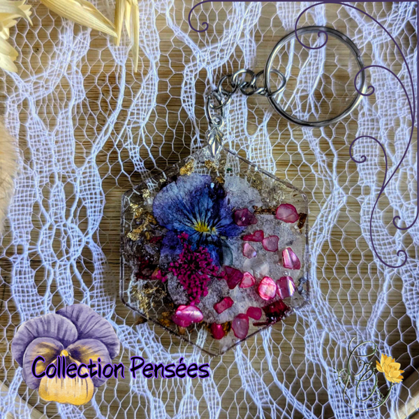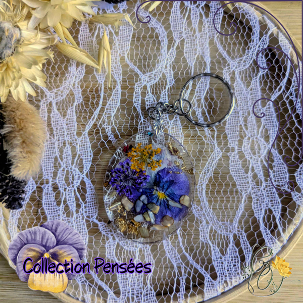 Porte-clé en résine – Collection Pensées (4 pièces différentes)