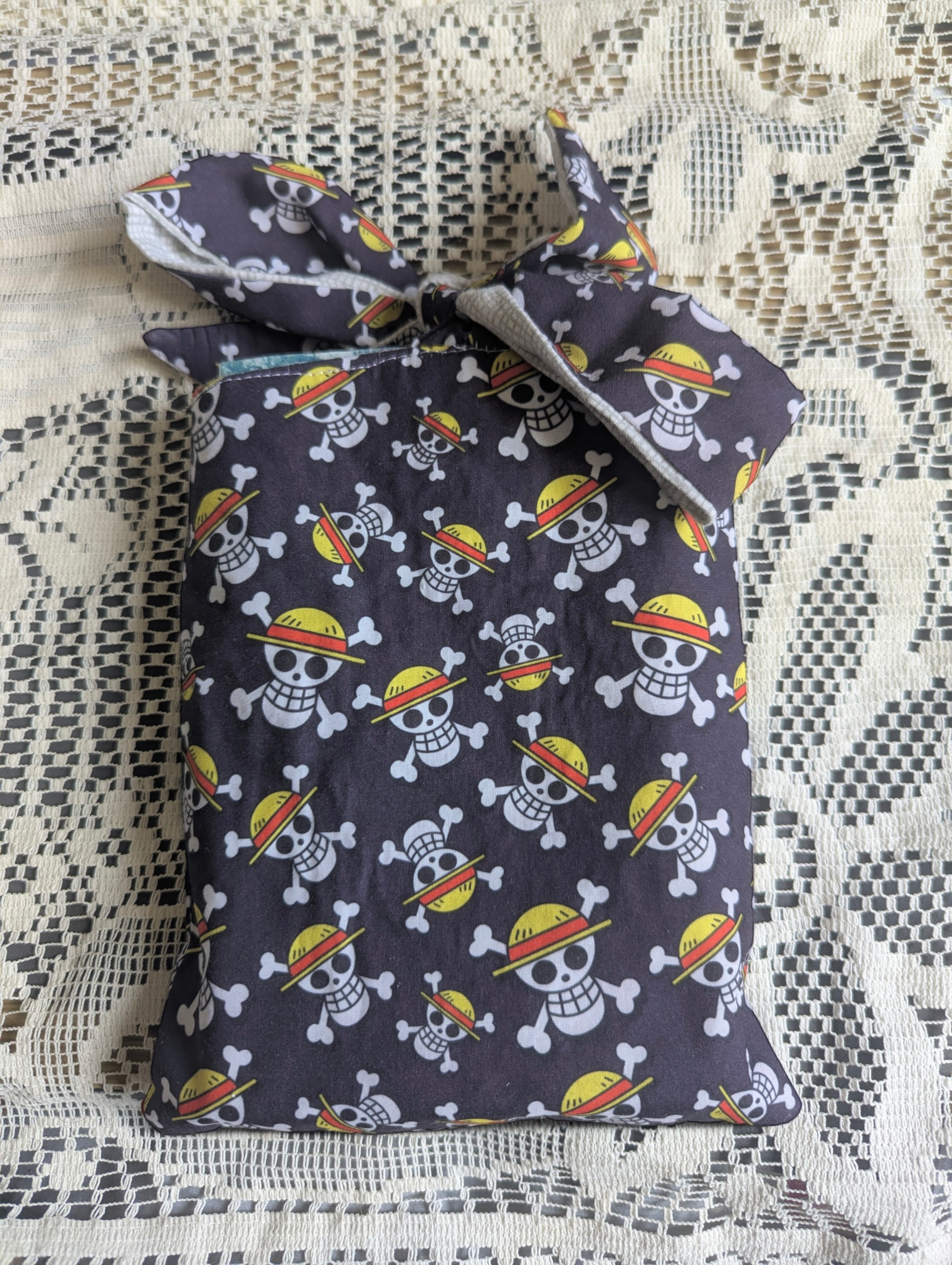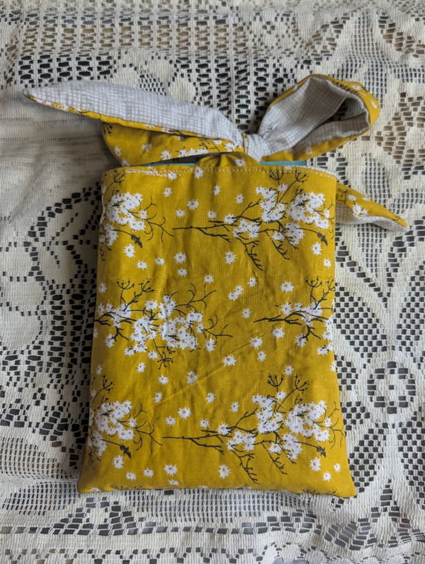 La fermeture se fait grâce à un joli nœud sur le dessus, à la fois pratique et décoratif, qui maintient ton livre bien en place sans l’abîmer.